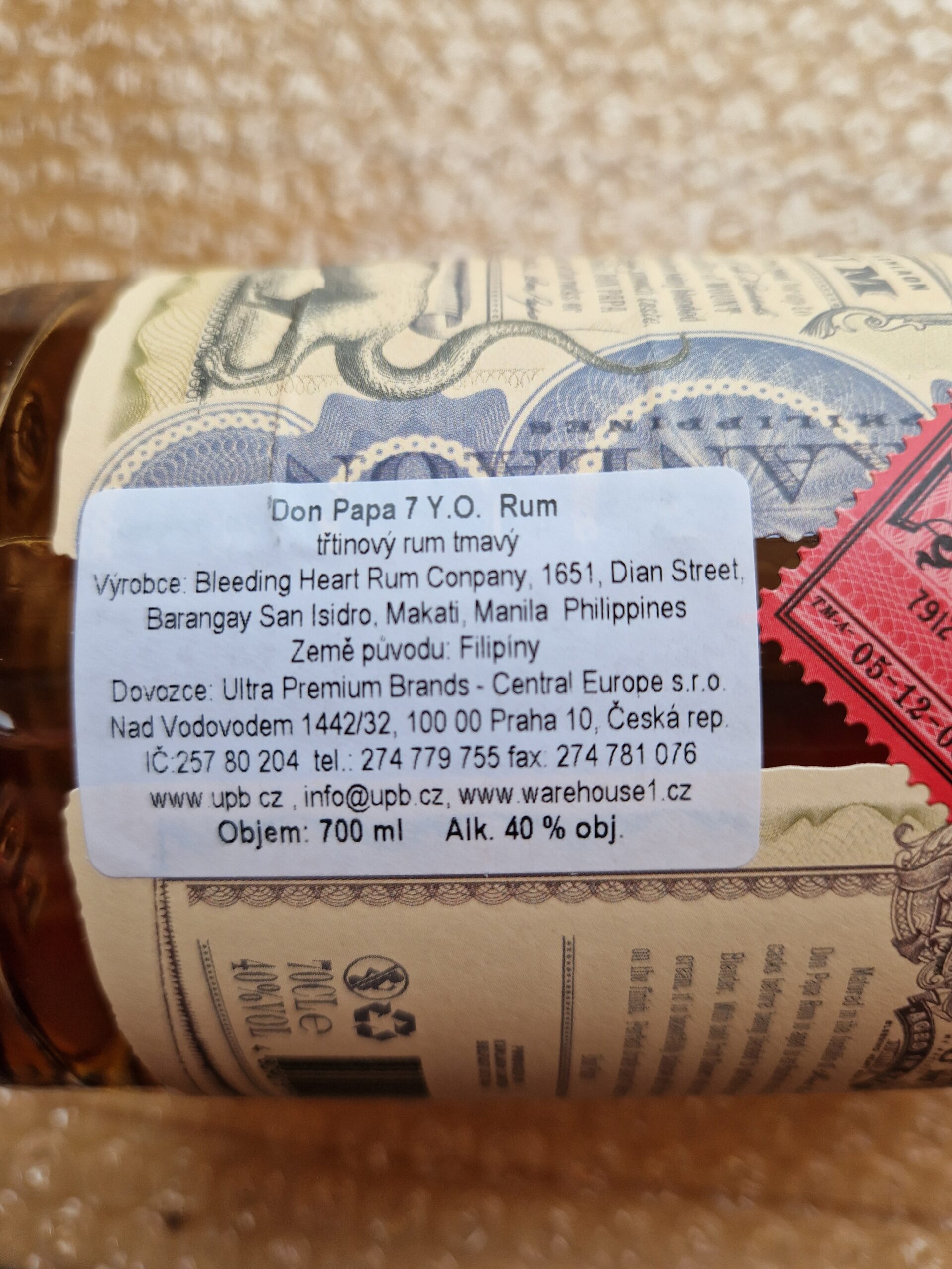 Don Papa patří k nejoblíbenějším melasovým rumům vůbec. Za jeho ovocnou vůní a příjemně nasládlou chutí s tóny vanilky, medu a kandovaného ovoce stojí špičková třtina, tropické klima při zrání a pečlivě vybrané dubové sudy, ve kterých odpočíval až 7 let. Seznamte se s tímhle filipínským pantátou. Bude příjemným společníkem jen tak, při pokojové teplotě, nebo ho zkuste s velkou kostkou ledu.